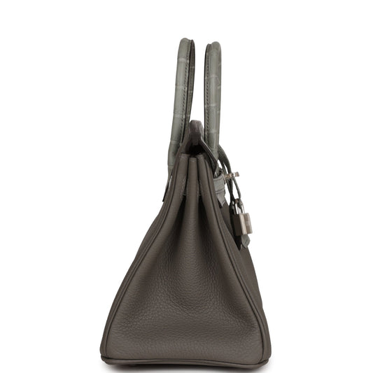 Hermes Birkin 25 Gris Meyer Togo and Gris Ciment Matte Alligator Touch Palladium Hardware