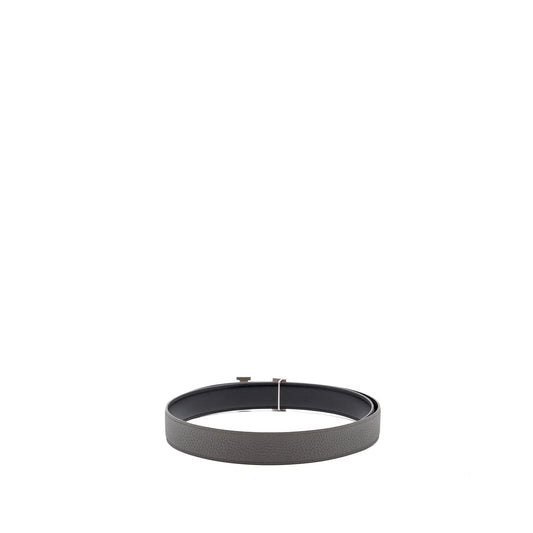 Hermes Size 95 H Buckle Reversible Belt Togo/ Box Grey / Black SHW