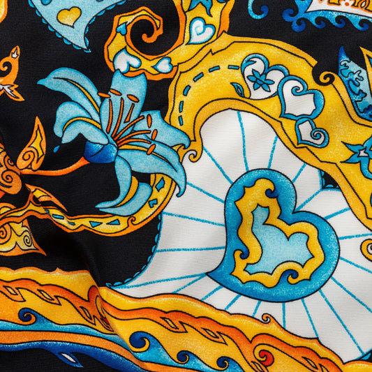 Hermes 90cm Silk Scarf De Tout Coeur Black/Orange/turquoise