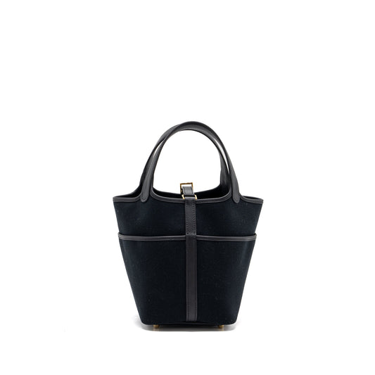 Hermes picotin cargo 18 lock bag swift / toile canvas black GHW stamp U