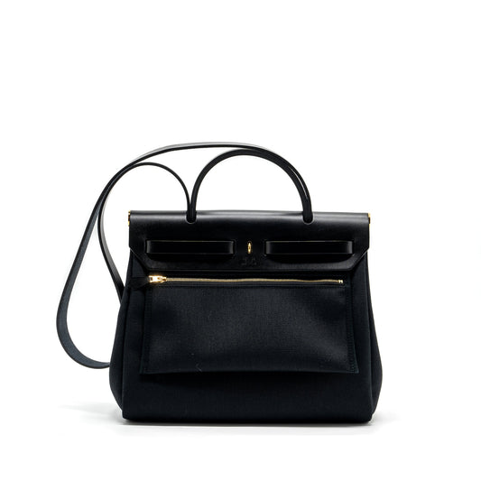 Hermes Herbag 31 Zip Bag Canvas/ Hunter Black GHW Stamp U