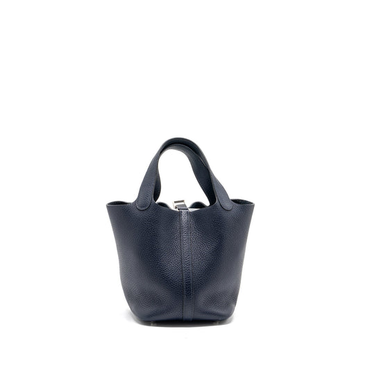 Hermes Picotin 18 Clemence Dark Blue SHW Stamp X