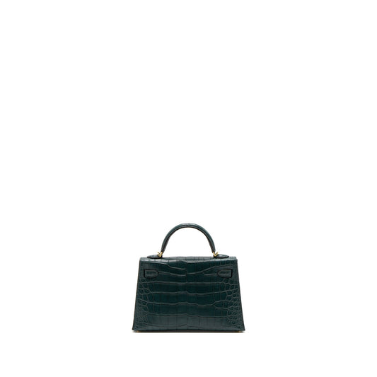 Hermes Mini Kelly II Alligator Mississippiensis Matte 6O Vert Cypres GHW Stamp U