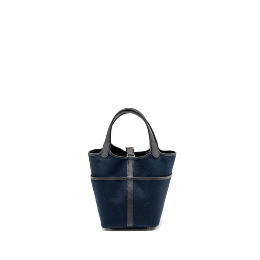 Hermes picotin cargo 18 lock bag canvas/ swift leather blue marine / black SHW stamp Z