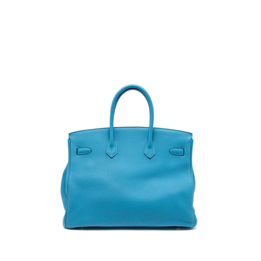 Hermes Birkin 35 Togo Turquoise Blue SHW Stamp Square R