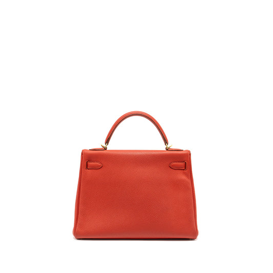 Hermes Kelly 32 Togo 5E Vermillion GHW Stamp Square Q