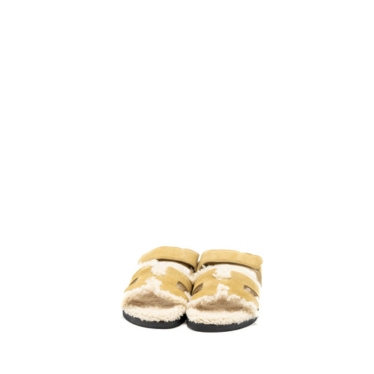 Hermes size 36 chypre sandals chevre velours beige albatre