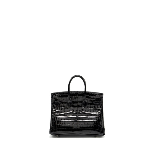 Hermes Birkin 25 shiny Crocodile Niloticus black SHW stamp D