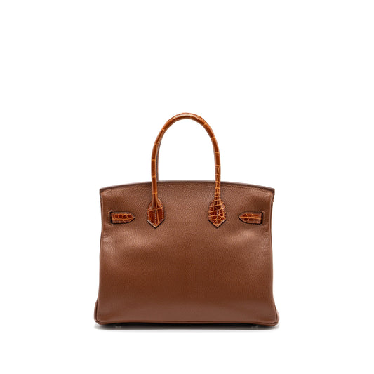 Hermes birkin touch 30 shiny crocodile niloticus / chevre leather Miel SHW stamp D