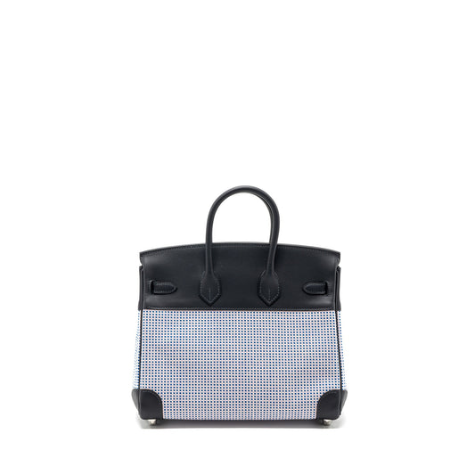 Hermes Birkin 25 Toile Quadrille/Swift Ecru Mauve/Bleu Bill/Caban SHW Stamp B