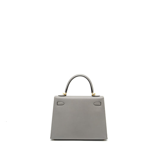 Hermes Kelly 25 Special Order Epsom Gris Motte / Rose purple GHW Stamp C