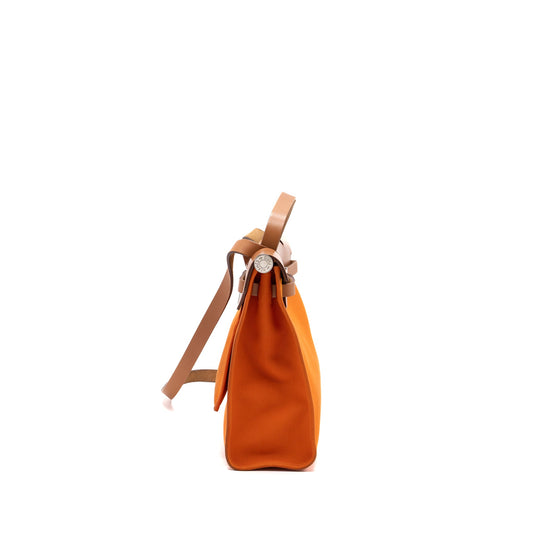 Hermes Herbag 31 Zip Bag Canvas/Hunter Orange SHW Stamp Square R