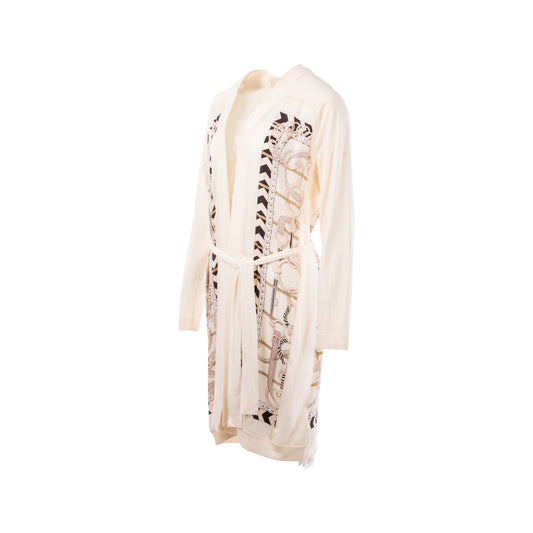 Hermes Size 38 Long Twillaine Cardigan Silk/Wool White/Multicolour