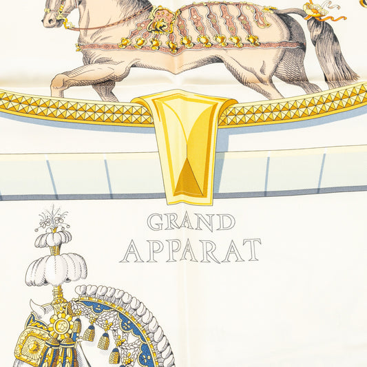 HERMES 90*90cm Silk Forever Scarf Grand Apparat Crème / Gold / Multicolore