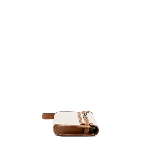 Hermes pochette kelly depeches 25 canvas / barenia ecru beige / fauve SHW stamp Z