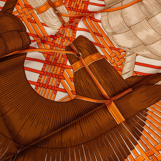 Hermes 90cm Silk Scarf Masan Masan Orange/Grege/Tabac