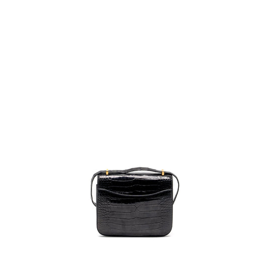 Hermes Mini Constance Alligator Mississippiensis shiny black GHW stamp X