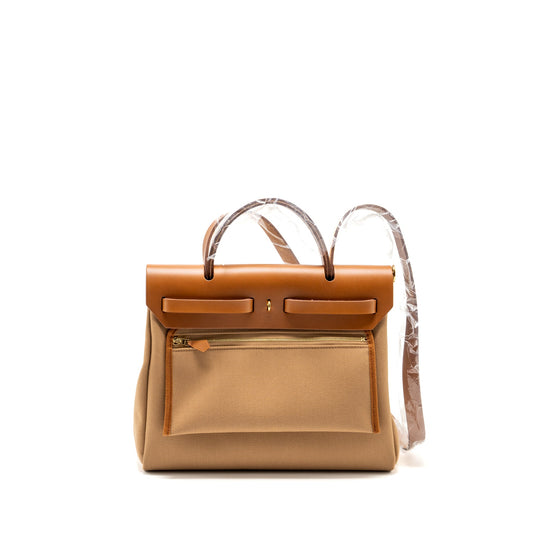 Hermes Herbag 31 zip bag CANVAS/VACHE HUNTER chai / fauve GHW stamp U