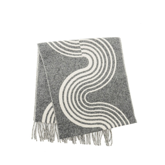 Hermes Casaque Vague Muffler Scarf Cashmere Gris Flanelle/Ivoire