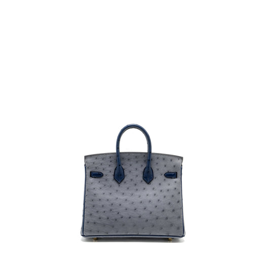 Hermes Birkin 25 Special Order Ostrich Gris Agate/Blue Iris LGHW Stamp D