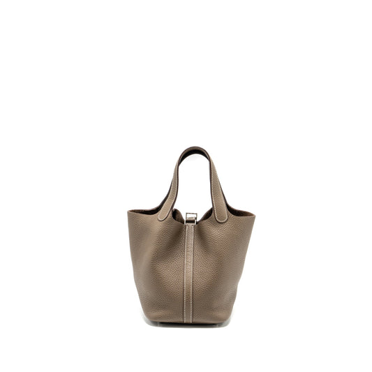 Hermes picotin 18 lock bag clemence Etoupe SHW stamp A