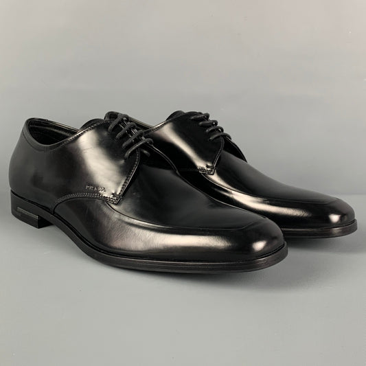 PRADA Size 8 Black Leather Lace Up Shoes