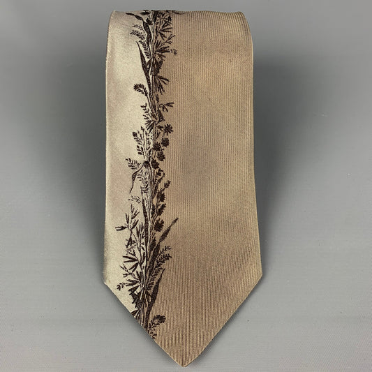 PRADA Taupe Brown Floral Silk Tie