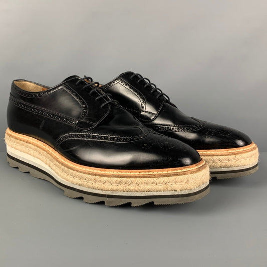 PRADA Size 11.5 Black Perforated Leather Wingtip Lace Up Shoes