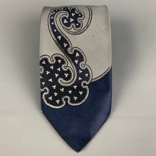 PRADA Grey Navy Paisley Silk Tie