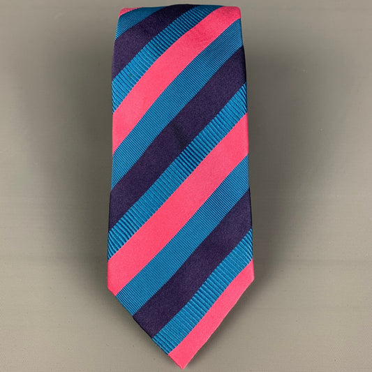 PRADA Blue Pink Diagonal Stripe Silk Tie
