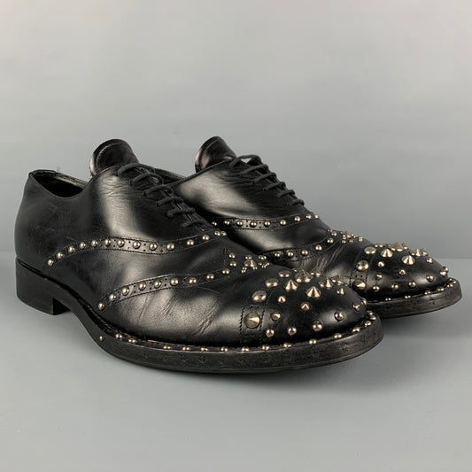 PRADA Size 9 Black Leather Studded Cap Toe Shoes
