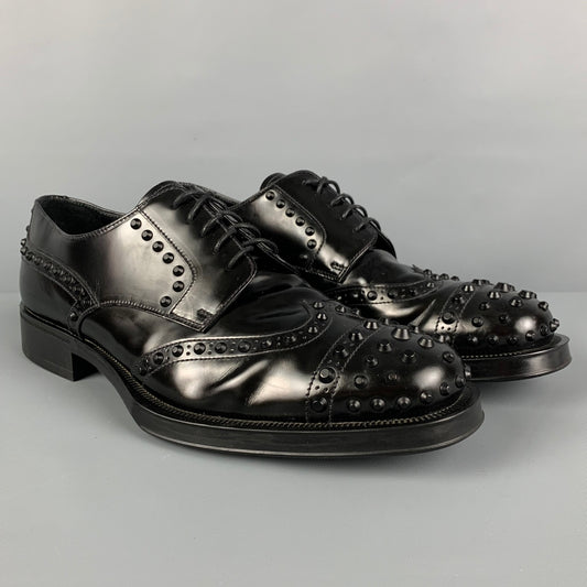 PRADA Size 10.5 Black Studded Leather Lace Up Shoes