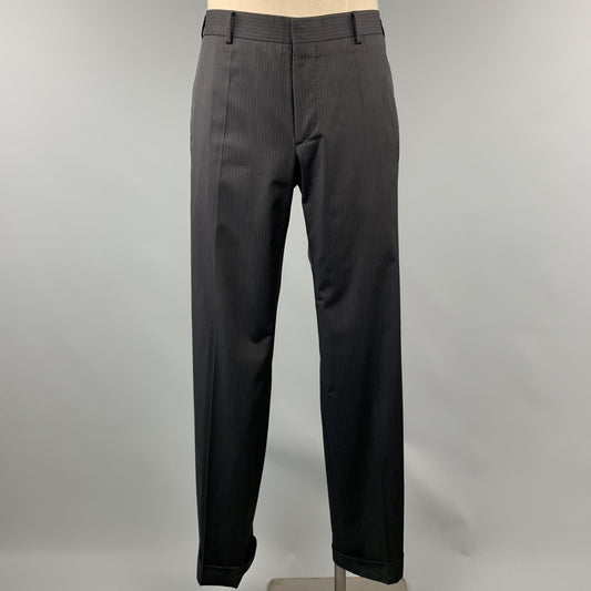 PRADA 42 Long Charcoal Stripe Wool 36 x 34 Suit