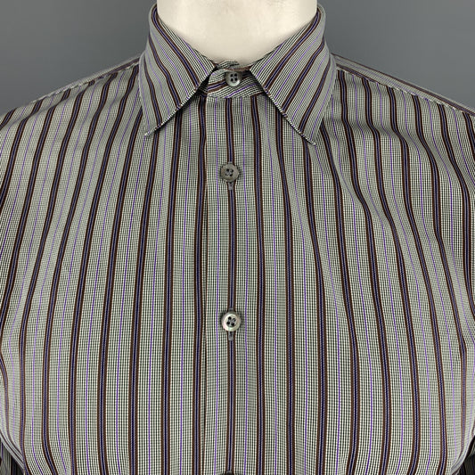 PRADA Size L Gray Brown Green & Purple Stripe Cotton Long Sleeve Shirt