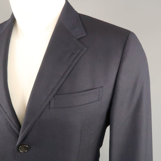 PRADA 38 Regular Navy Woven Textured Wool Three Button Sport Coat