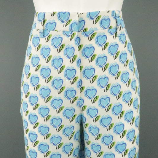 PRADA Size 2 White & Blue Silk Heart Print Casual Pants