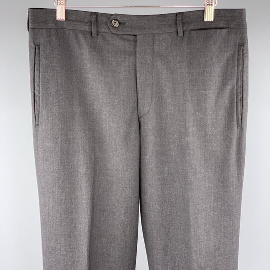 PRADA Size 34 x 30 Charcoal Solid Wool Zip Fly Dress Pants