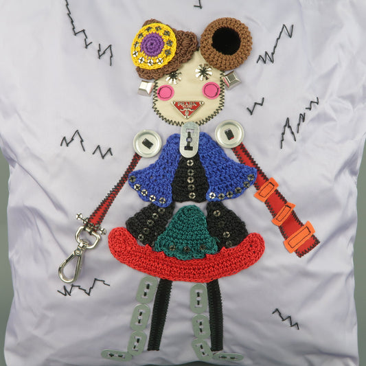 PRADA Lavender Nylon Robot 6 Lady Embellished Tote Handbag