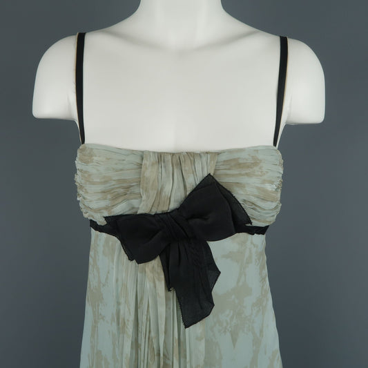 PRADA Size 6 / IT 42 Blue Pleated Marbled Silk Chiffon Bow Dress