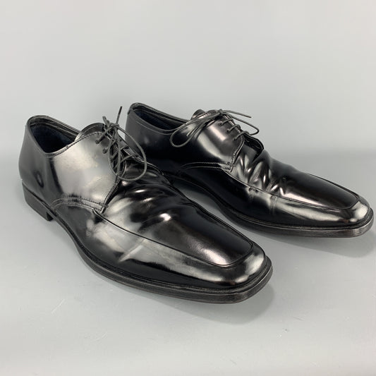 PRADA Size 12.5 Black Leather Apron Toe Lace Up