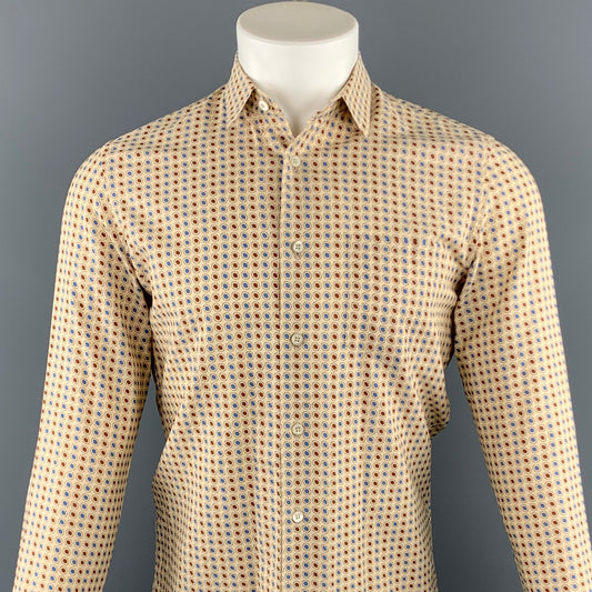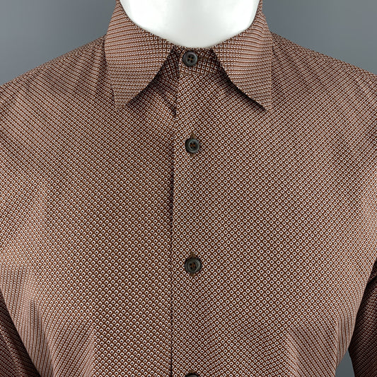 PRADA Size S Brown Dotted Print Cotton Button Up Long Sleeve Shirt