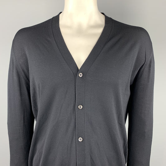 PRADA Size XL Black Solid Lana Wool Cardigan