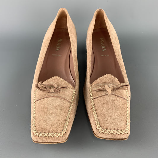 PRADA Size 9.5 Beige Suede Loafer Kitten Heel Pumps