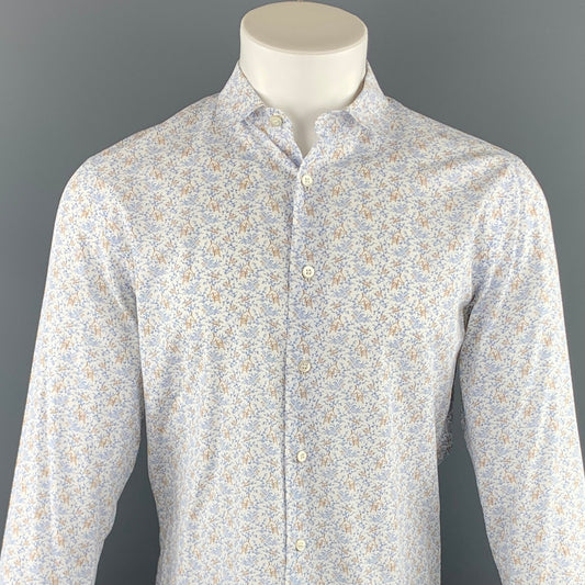 PRADA Size M Blue & Brown Print Cotton Button Up Long Sleeve Shirt