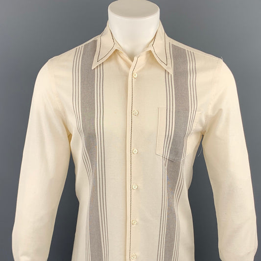 PRADA Size S Cream Stripe Cotton Patch Pocket Long Sleeve Shirt