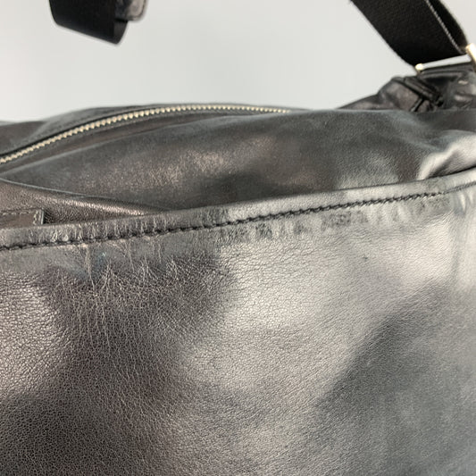 PRADA Black Leather Enamel Logo Crossbody Messenger Bag