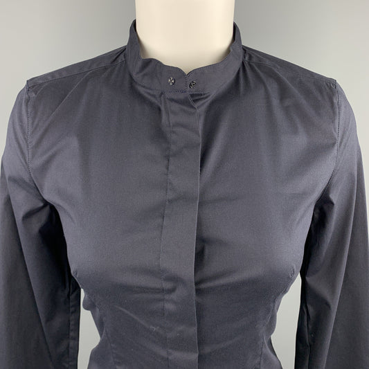 PRADA Size 4 Navy Stretch Cotton Band Collar Shirt