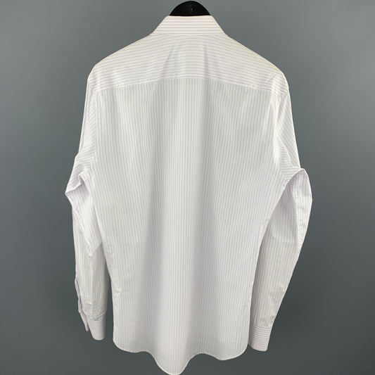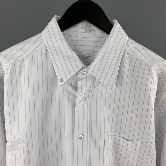 PRADA Size XL White & Blue Pinstripe Cotton Button Down Long Sleeve Shirt