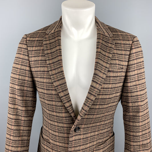 PRADA Size 38 Brown Plaid Lana Wool / Alpaca Notch Lapel Sport Coat