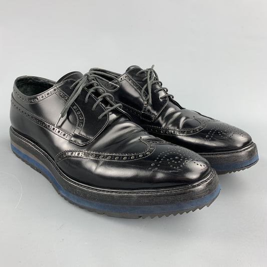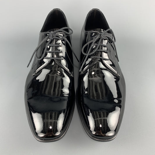 PRADA Size 9.5 Black Patent Leather Lace Up Dress Shoes